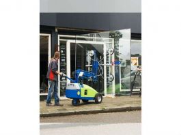 A louer, chez Locamat, robot électrique pour la pose des vitres. Cette mini-grue est disponible dans les magasins Locamat à Bruxelles, Charleroi, Châtelineau, Mons et Namur.